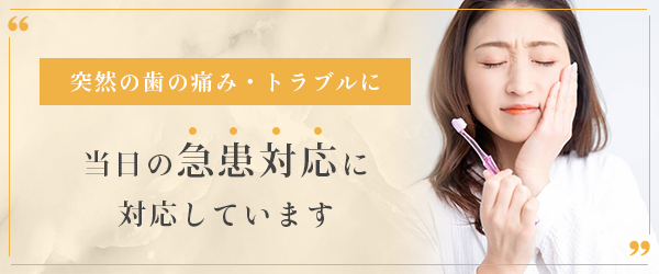 また、24時間WEB予約に対応しているため、思い立ったときにいつでもご予約が可能です。急な歯の痛みにも対応しておりますので、お困りの際はお気軽にご相談ください。
