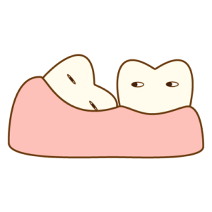親知らずは、変に斜めに生えているとどうしても歯磨きが届かない不潔な部分が出てきてしまい歯周炎を起こしてしまうことがあります💥