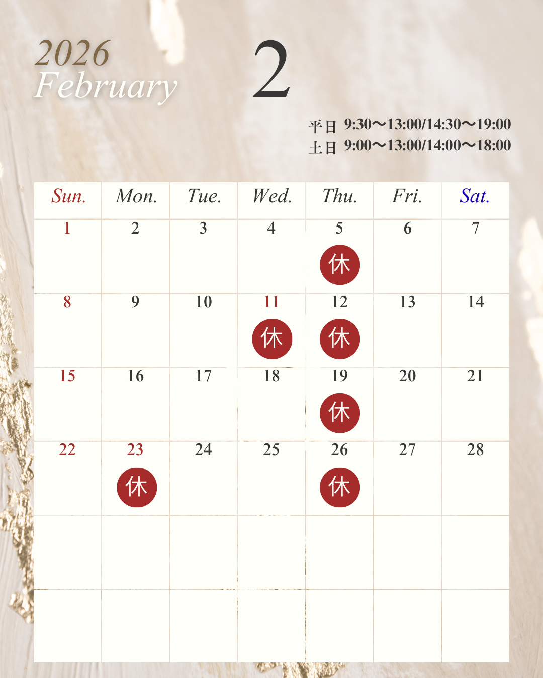 土日;9:00〜13:00/14:00〜18:00